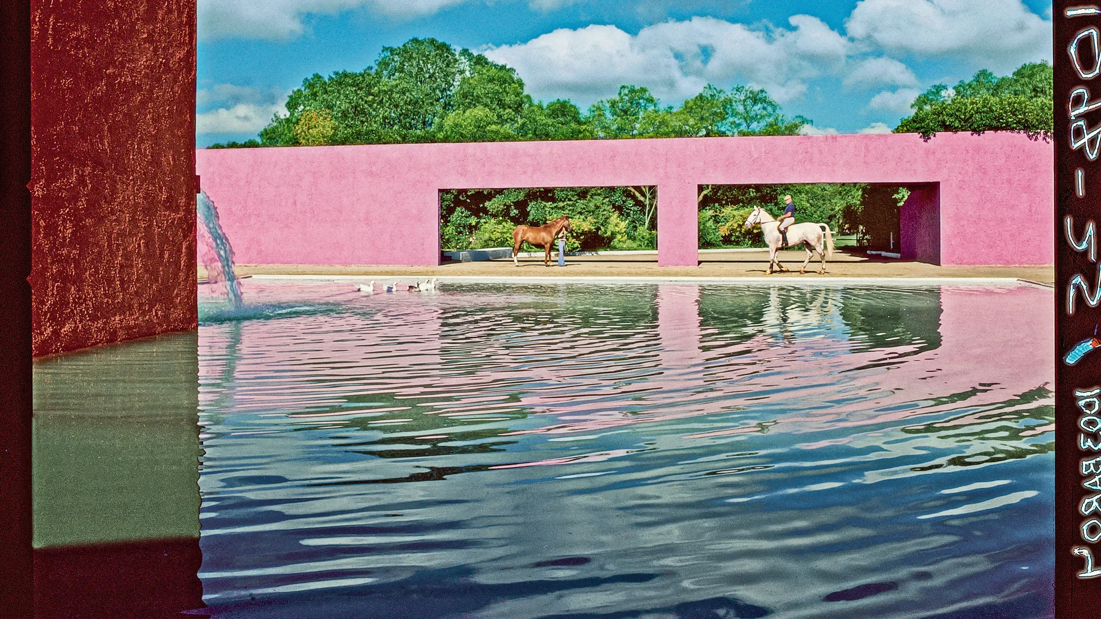 La Cuadra, shown in the bottom right photo, is a museum dedicated to the dynamic interaction between art and architecture. I drew inspiration from the symmetry of the building and reflection of the bright colors into the water.