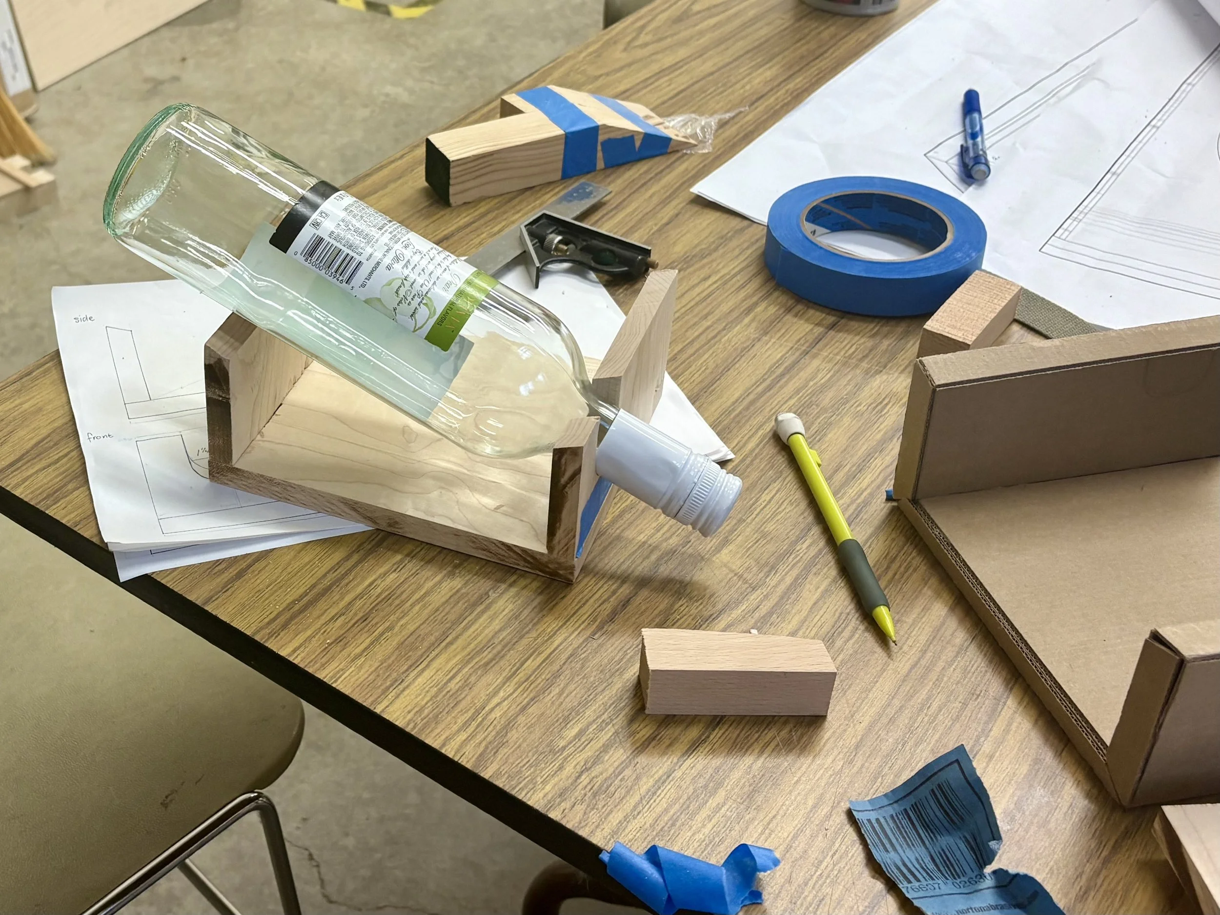 Through my coursework, I’ve developed a wide range of skills, from digital tools like Adobe CC and CAD, to hands-on techniques in sewing, woodworking, whittling, physical rendering, and ceramics.