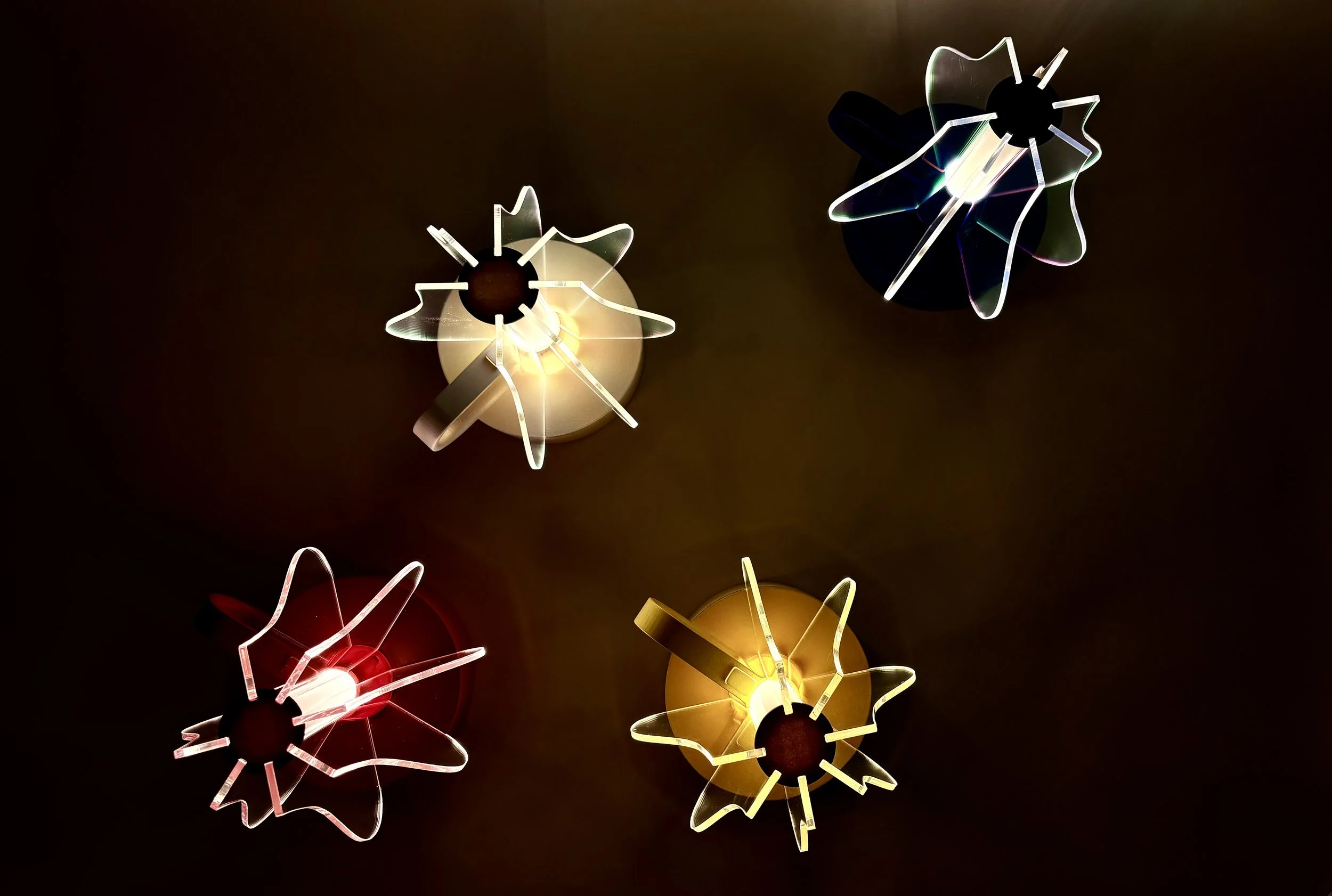 The wine bottles themselves become the art, appearing to levitate on the same level within the surrounding space. Reflecting the surrounding light.